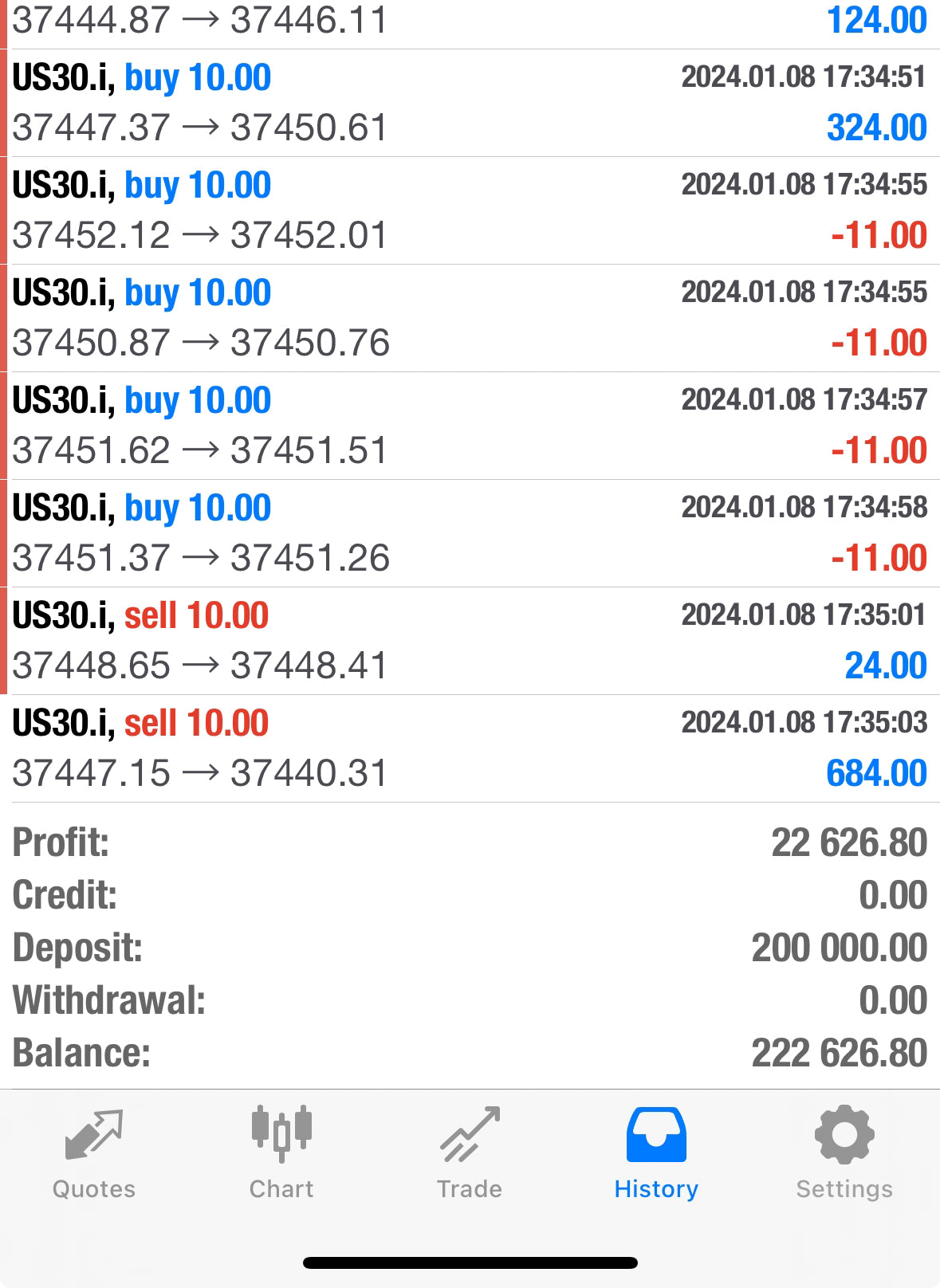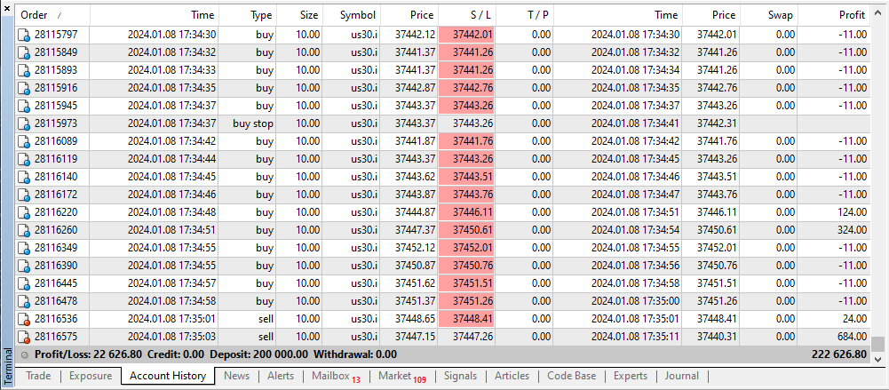 We specialize in facilitating High-Frequency Trading (HFT) propfirm challenges, boasting a flawless 100% success rate. We excel in navigating prop firm challenges by leveraging a specialized HFT trading robot. This sophisticated tool exploits demo conditions by executing rapid orders with tight stop-loss settings on US30. In the controlled demo environment, devoid of slippage or authentic market spreads, these orders yield either substantial gains or minimal losses. It's important to note that this strategy is exclusive to passing challenges and isn't applicable in real-market scenarios.