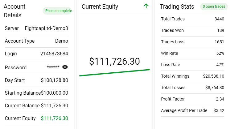 Once passed, I'll stop the bot and you'll have an email from the prop firm with your new funded account! This bot ONLY works on evaluation stages, you can not run it on a live account (unfortunately).